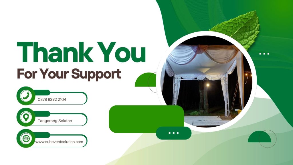 Subevent adalah solusi terbaik untuk Anda yang ingin menghadirkan suasana pernikahan yang elegan dan berkelas. Dengan pengalamannya dalam berbagai acara, SUBEVENT siap membantu Anda membuat dekorasi tenda plafon yang berkualitas dan indah. Semuanya dapat disesuaikan dengan kebutuhan Anda, mulai dari ide sederhana hingga mewah.