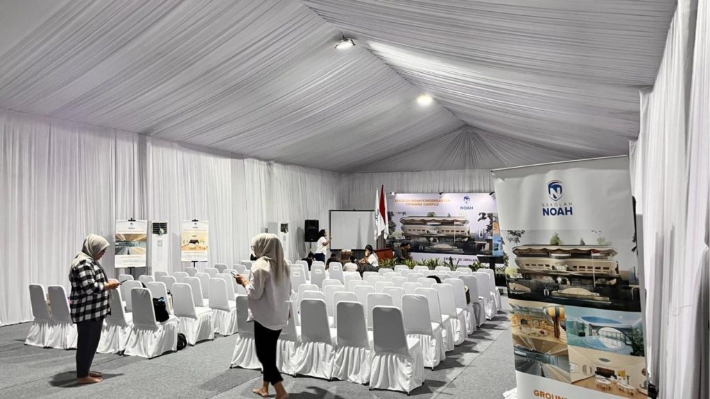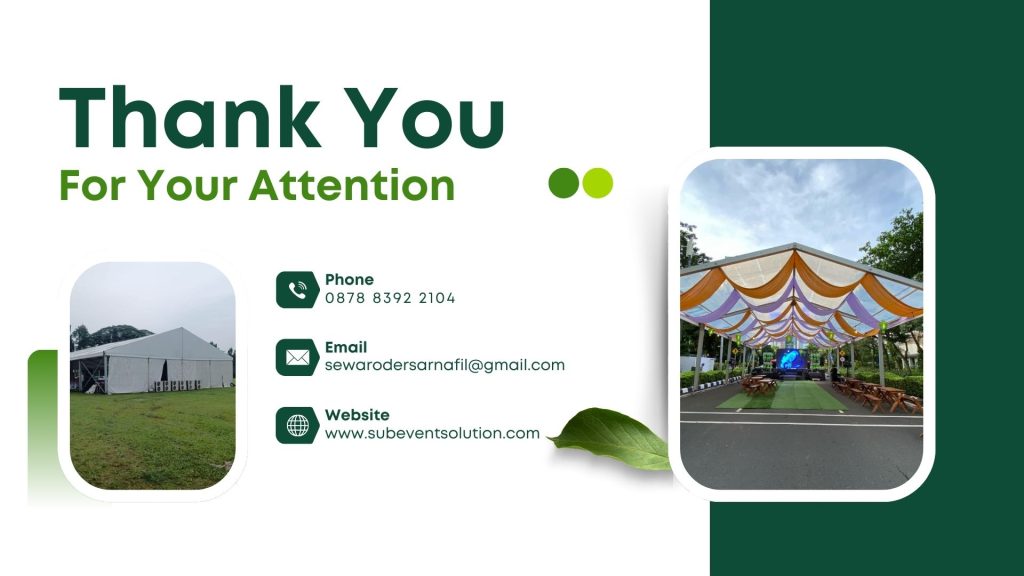 Atap putih cocok untuk acara resmi, acara perusahaan, pernikahan, dan kegiatan pemerintahan karena memberikan kesan bersih, formal, dan profesional.