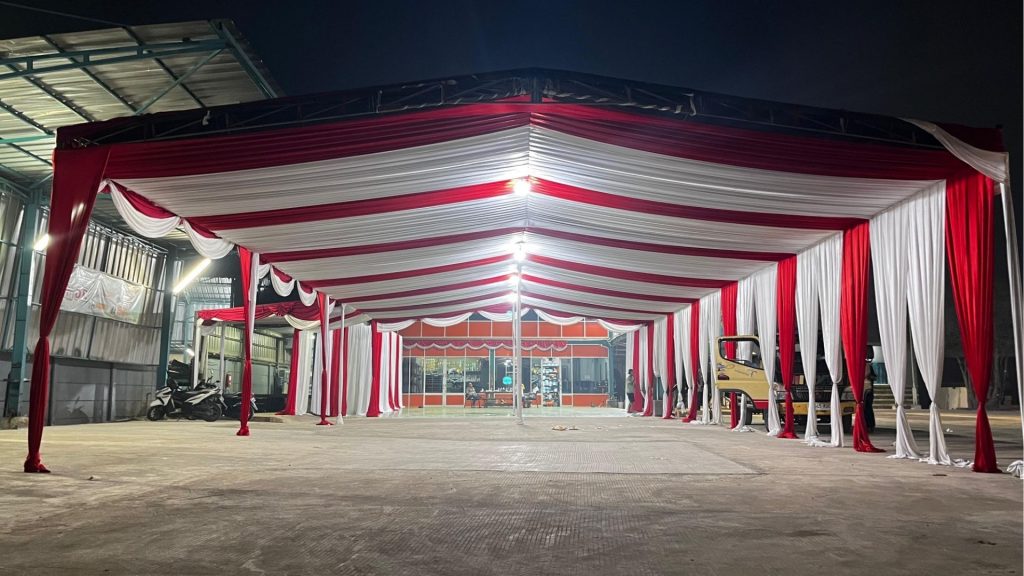 Tidak seperti tenda biasa, tenda serut memiliki lipatan kain yang rapi di plafon yang membentuk pola lembut yang indah. Cocok baik untuk acara keluarga maupun formal perusahaan, tampilan acara terlihat lebih mewah, bersih, dan profesional.