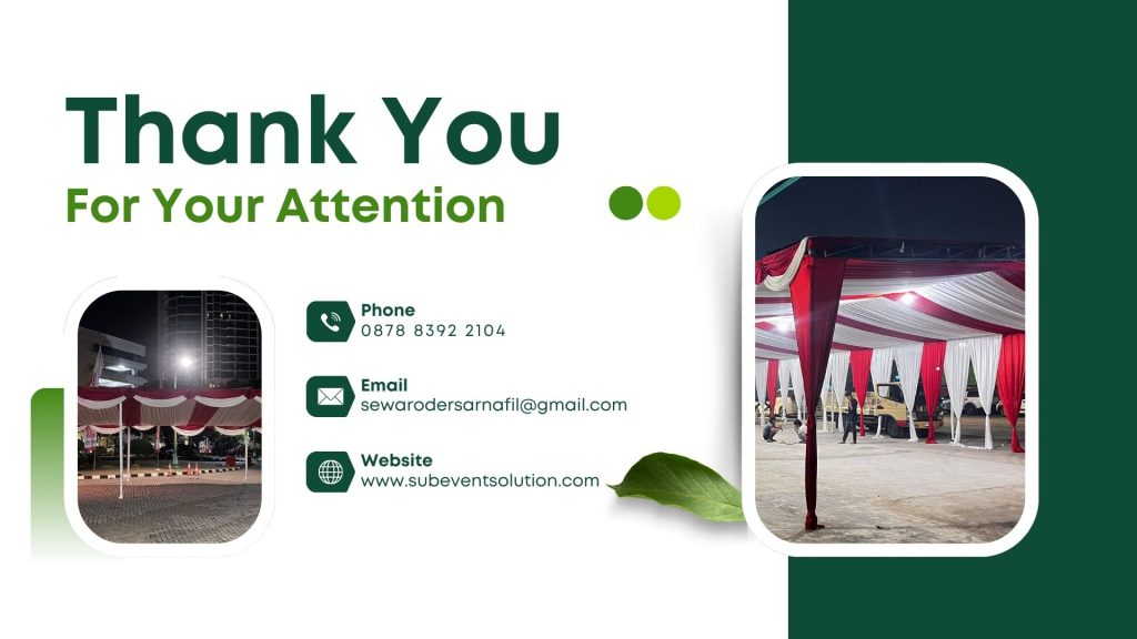 Jangan sampai acara penting terganggu karena tenda tidak rapi, kursi tidak cukup, atau panggung tidak kokoh. Acara penting hanya terjadi sekali setahun.